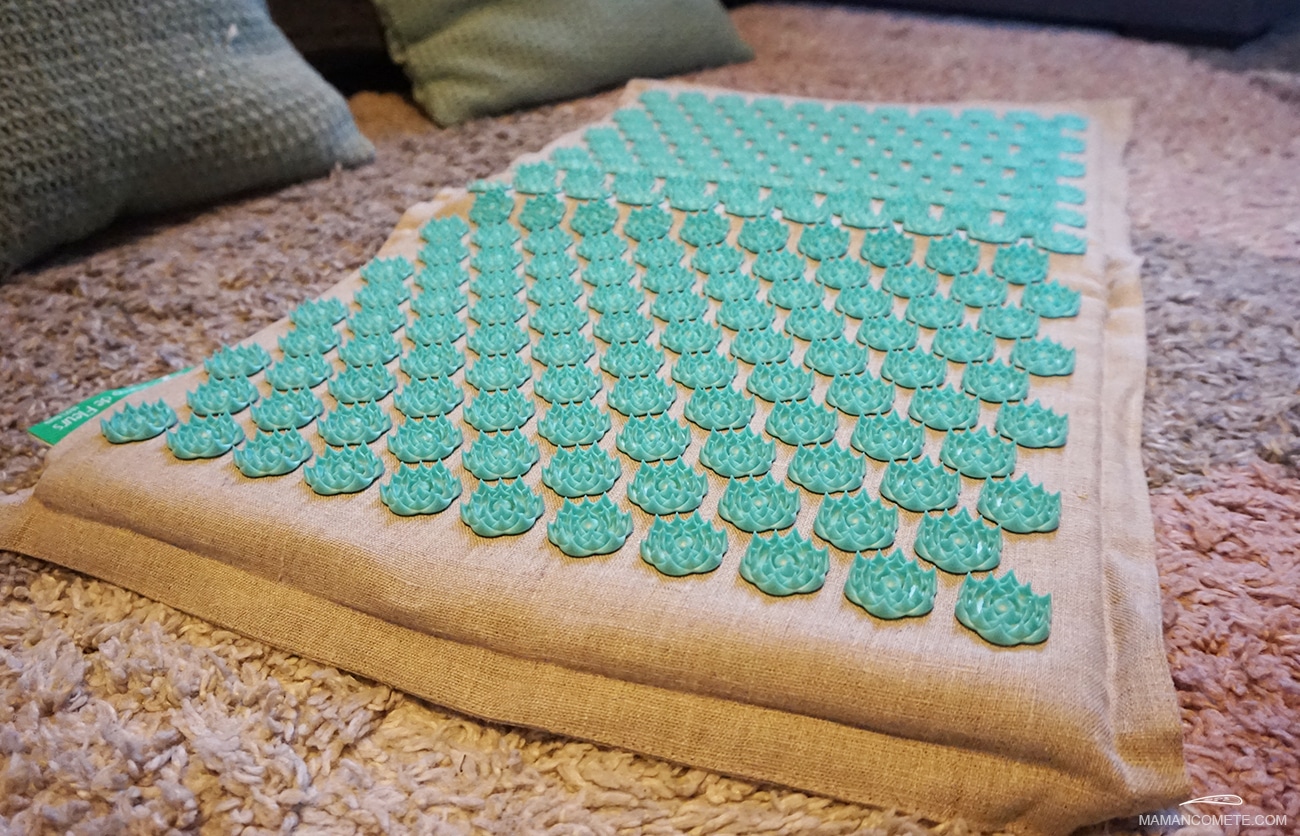 Conçu à l’aide de matières biodégradables, le tapis d’acupression est un tapis qui est recouvert d’un grand nombre de fleurs de lotus. Chacun de ces lotus dispose d’une vingtaine de pétales possédant des pointes à la fin. Doté d’une enveloppe en lin et d’un intérieur en fibres de coco, ce tapis est l’équipement dont vous avez besoin pour vous relaxer. Il ressemble à un tapis de yoga recouvert de centaines de picots en plastiques. C’est en effet le tapis de relaxation et de massage qu’il vous faut pour soigner votre mal de dos de manière simple et efficace.
